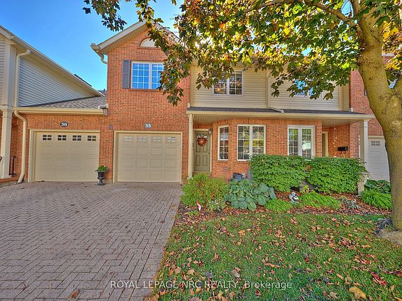 Welcome to this exceptional townhome nestled in a prestigious West St. Catharines neighborhood, perfectly positioned on a stunning ravine lot backing onto Twelve Mile Creek. Enjoy the serenity of nature with unobstructed views of lush greenery and complete privacy-no rear neighbors, just the peaceful sounds of nature and the beauty of the surrounding landscape. This spacious 1,697 sqft two-storey townhome offers an impressive blend of comfort, elegance, and style. The main floor welcomes you with an updated eat-in kitchen featuring granite countertops, a stylish tile backsplash, and plenty of cabinetry. A separate formal dining room provides an inviting space for gatherings, while the bright and airy living room showcases hardwood flooring, soaring ceilings, and skylights that flood the space with natural light. Step through the sliding glass doors to a private wood deck, where you can relax and take in the breathtaking ravine views. Upstairs, you'll find 3 bedrooms, including a generous primary suite with a walk-in closet and a private 3-piece ensuite bathroom. A second full 4-piece bath with skylight completes the upper level. The finished basement extends your living space with a large recreation room, spacious laundry area, and two additional storage rooms. Additional updates include a newer air conditioner (within 3 years). Set in one of St. Catharines' most desirable areas, this home offers a rare combination of tranquility and convenience-close to parks, trails, shopping, Brock University and major amenities. A truly special opportunity to own a home that combines privacy, prestige, and natural beauty.