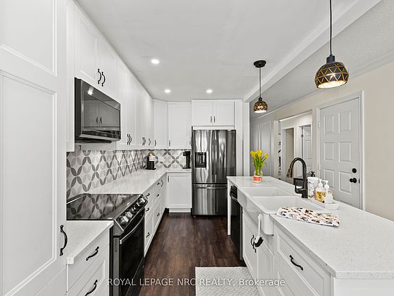 Tucked away in a peaceful setting with no rear neighbours and backing directly onto the ravine along Twelve Mile Creek, this beautifully updated condo townhouse offers a rare combination of privacy, space, and modern finishes. Fully renovated from top to bottom, the home showcases a thoughtfully designed layout with three generously sized bedrooms and three stylish bathrooms, making it ideal for families, professionals, or those looking to enjoy low maintenance living without compromising on comfort.The heart of the home is the updated kitchen, completed in 2022, featuring a fresh, modern design that flows seamlessly into the living and dining areas, perfect for both everyday living and entertaining. All bathrooms were renovated in 2023, offering a refined, updated look with attention to detail throughout. The spacious primary bedroom is a true retreat, complete with a walk in closet and a private ensuite. With serene ravine views, no rear neighbours, and every major update already done, this move in ready townhouse is a standout opportunity in an exceptional natural setting.