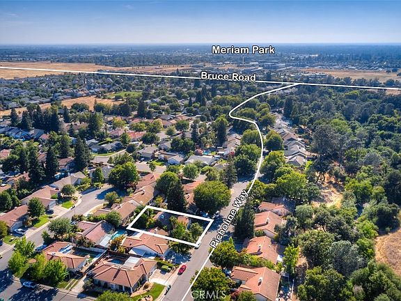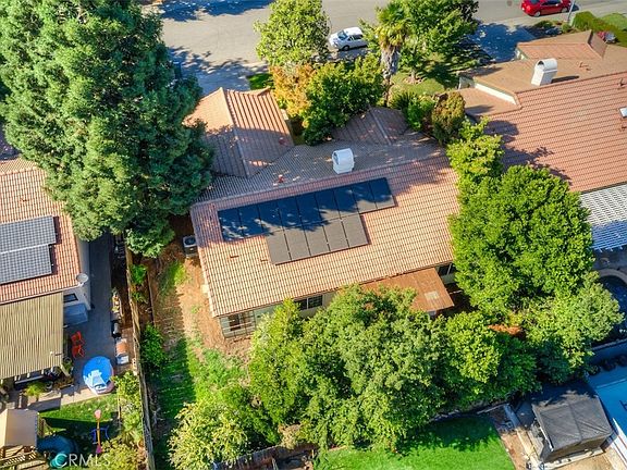 Welcome to this remarkable home in Little Chico Creek Estates, featuring OWNED SOLAR that has met nearly all of the seller's energy needs. Located off the beaten path yet minutes from the vibrant Meriam Park development, this home offers both tranquility and convenience. As you enter, you'll be greeted by a private courtyard leading to a beautifully trellised tiled patio in the rear. The versatile floor plan boasts a formal living area in the front and a family room overlooking the lush rear yard, both with soaring vaulted ceilings. These spaces are cleverly divided by an overhead shelf, creating a sense of separation while maintaining an open feel. The family room features a charming white brick fireplace with a bench hearth and built-in shelving. It opens up to a light-filled breakfast area and a recently updated kitchen. The kitchen shines with chic blue cabinetry, quartz countertops, a stylish white tile backsplash, and stainless steel appliances, including a stunning Wolf range. The main living areas are adorned with luxury vinyl plank flooring, new recessed lighting, and oversized windows that flood the home with natural light. The primary bedroom offers French doors that open to the covered patio and private rear yard. The primary bath is equally impressive with a spacious walk-in shower, oversized tub, and granite countertops. The finished two-car garage includes double French doors leading to a second trellised patio, adding even more outdoor living space. Don’t miss your chance to own this turnkey home in one of Chico's most desirable locations!