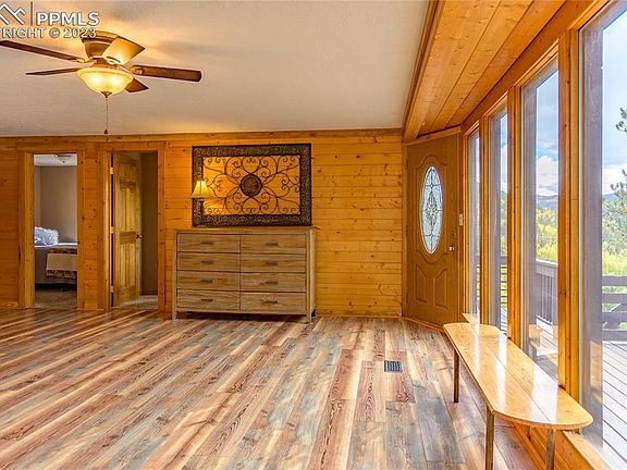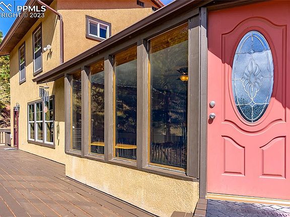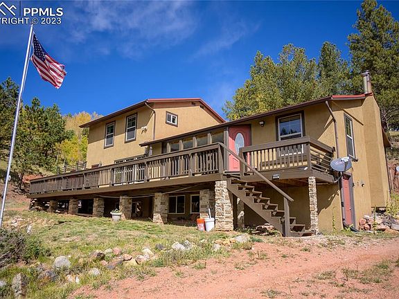 Looking for incredible views? A peaceful mountain retreat w/ character & quirkiness? Maybe a greenhouse? This 2 story home in Rainbow Valley just might be what you’re seeking. Sitting on 2.63 acres, the home faces south w/ incredible moutain & forest views from the giant front deck & the large windows in the “front room” - which could serve as a dining/living combo. This is one of many options/dual functions here. Another is the large windows: they provide passive solar warmth + the gorgeous views. Designers certainly had open-concept living in mind w/ the front room & kitchen combination. Off the kitchen, find a laundry/mud room, leading to a bonus room/workshop. This appears to be a finished enclosed porch, as it's unheated. There’s extra living space (family room), w/ a wood stove & 2nd entrance. Two bedrooms, full bath, & a ¾ bath round out the offering on the main level. Upstairs find an enormous primary bedroom, w/ walk out, & ready for a 2nd stove. Sneak some mountain views from the windows there. Downstairs, you’ll find: built-in beds in the 4th bedroom & a bonus room (5th bedroom? study? storage?), an “office”, rough-in for laundry (or sink? Or a kitchenette?), a small family room, & the “coal room”- it's unfinished & houses the furnace an extra coal/wood stove + storage, with exit. Pet friendly w/ pet doors & fenced area in the back. Outside find the greenhouse, a shed for wood storage (& a glass section used for drying wood/plants), a small pond, & loads of geological & flora finds, including what looks like gold dust! There really may be gold in them thar hills. In Rainbow Valley all the homes have a cistern. This one may be the largest in the area, boasting a 2600 Gal concrete one! Lastly, if you’re seeking recreation, you’ll find much to explore. Pikes Peak, Crags, Raspberry Mountain, Mueller State Park, Dome Rock, Horsethief Park trail are all minutes away. Divide, Woodland Park, & Cripple Creek/Victor are within ~20 minutes. Come take a look today!