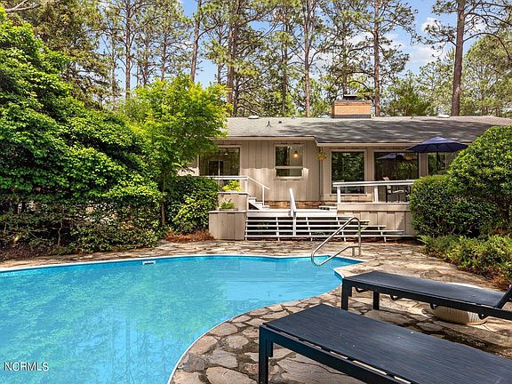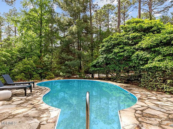 Consider your potential enhanced lifestyle with this rare Pinehurst find! Situated in the sought after Clarendon Garde neighborhood, this pool home provides a back yard retreat worthy of classic entertainment or simply a sanctuary for you. Set on an oversized lot encompassed with tree lined privacy. Patio doors from the kitchen, wet bar area and primary suite all flow to a three tiered deck, leading to a stamp crete patio surrounding a sparkling in-ground pool. The professionally modernized and revamped interior boasts a genuine expansive gourmet, high grade kitchen with signature Cafe appliances, custom cabinets and Quartz counters. Additionally, the spacious primary suite includes a walk-in tiled shower, a separate garden tub and a large walk-in closet. Flexible floor plan provides the option for an office or third bedroom. The elegant décor and new hardwoods throughout complete this truly amazing offering! All located in a prime location minutes from the village center, golf, fine dining and boutique shopping.