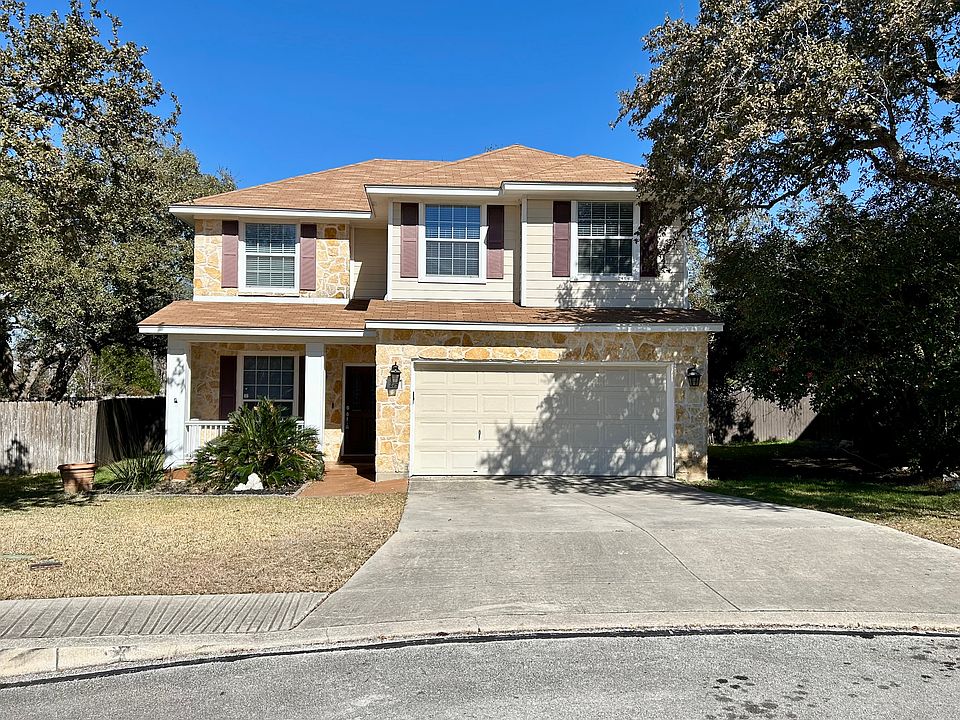 Private Cul-de-Sac Lot! Make this Beautiful home with $25,000+ in renovations yours. New flooring, fresh paint, and no carpet throughout. Open floor plan with formal dining and kitchen open to family room. Upgraded granite countertops, sinks, and fixtures. Serene parklike yard with extended patio, backs up to greenbelt, private fence, and mature trees. Water softener. Highly rated schools and convenient location near HEB and stores Your dream home awaits!