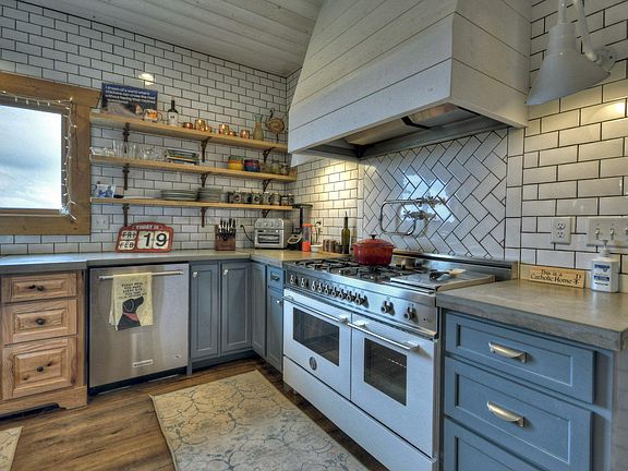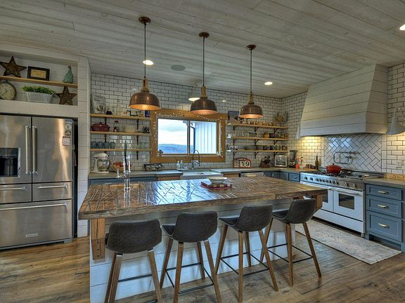 Modern Farmhouse on 20 acres w/ year round views! This masterpiece features a true chef's kitchen, Bertazzoni 6 burner range, double ovens, farmhouse sink, & a huge walk in pantry. Gather around the hand made wood island or dine (seating for 12) in front of the fixed glass window gazing at the mountains. Master suite w/ slipper tub, tile shower, his/her sinks & coffee/wet bar. 2nd level features another family room & 2 more ensuite bedrooms. Finished terrace level w/ game area, workout room & TV room. Separate carriage house over the 2 car garage featuring 2 more bedrooms, full bath, kitchen & great room. Amazing covered porches! Gentleman's farm w/ 4.5 acres of pasture that is fenced w/ horse tape. A 24x 24 shed/ barn with a 12 x 24 stall. Separate 2 acres of goat fenced pasture w/goat shed. Raised planter area w/ potting shed. Too many details to list! See 3D tour.