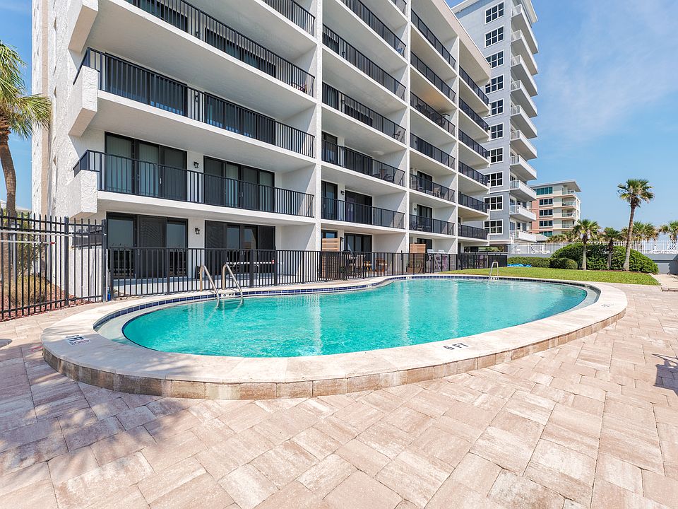 Experience coastal living at its finest in this stunning beachfront condo on 1st Street. This spacious home features 2 bedrooms and a versatile flex space that can easily serve as a home office or a cozy third bedroom. Enjoy direct access to a sparkling pool, perfect for relaxing after a day at the beach. With two dedicated parking spots included, convenience is guaranteed. Renters will have to pay for utilities. Max number of pets is 2.