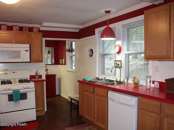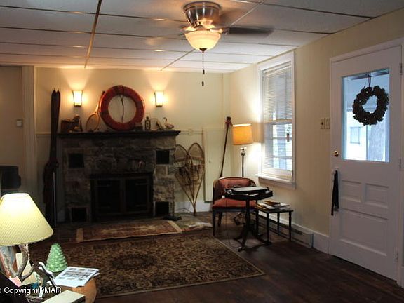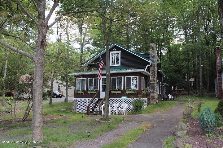 PRESTIGIOUS LAKE HARMONY Log Style home with view of Lake! Truly Delightful, Charming and Quaint best describes this four bedroom, new bathrooms, new kitchen new appliances, and comfy Living room with propane stone fireplace. Wood stove in dining room will also make this a special place to Live. Heating and Plumbing has been replaced and a New Steel Roof installed in 2013 with 30 yr. warranty. You can relax and enjoy the view of the lake from your front porch. Close to Pocono Attractions and quick access from the new EZ-pass of the north east extension of the turnpike. Check out the photo tour!