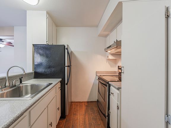 Studio condo converted to one bedroom on first floor and Vaulted ceilings in a spacious floor plan offering private patio. Hardwood floors and stainless steel appliances. Refrigerator included. The unit comes with 1 covered carport. The Springs community has community pool, laundry, SPA, tennis court, and park like surroundings. Conveniently located within a block to shopping, entertainment, and supermarket. Owner pays for HOA Dues and HOA covers water and trash.