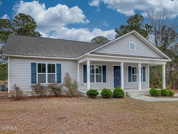 Located off the beaten path on almost 3/4 acre lot, this like new 3 bedroom, 2 bath one story home is conveniently located just minutes from Topsail Beaches, between Jacksonville and Wilmington. The vaulted ceilings welcome you into the home where you will find the open living area with LVP flooring and a peninsula style kitchen with granite countertops, white cabinets and stainless steel appliances. All three bedrooms have recently had the carpet replaced and have been professionally cleaned! Enjoy time outside drinking coffee from the front porch or grilling on the back deck. The detached two car garage is perfect for a workshop or storage! Move in ready with fresh paint! Schedule your showing and fall in love! NO HOA or city taxes!!