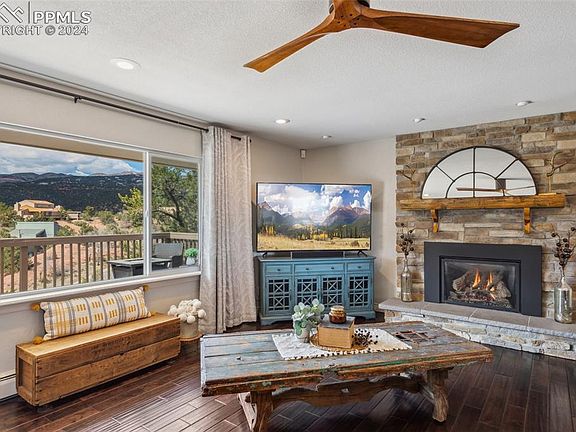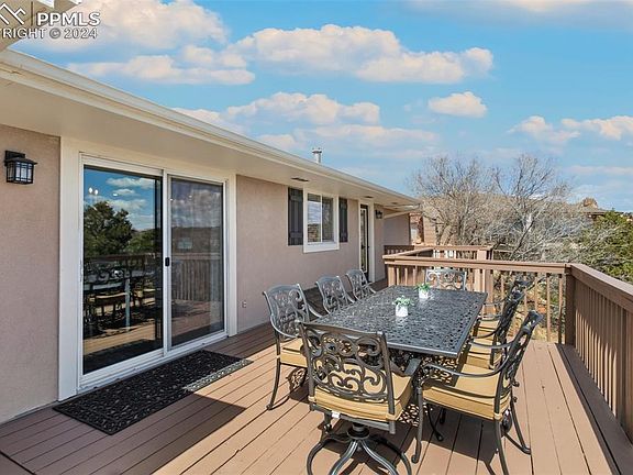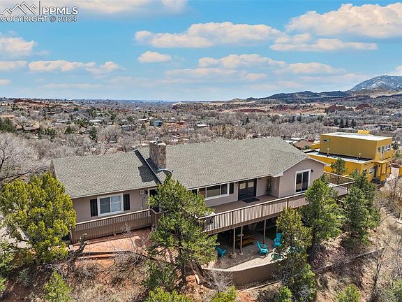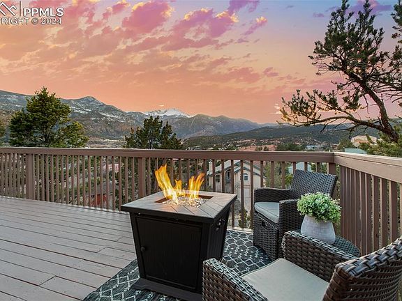 360 DEGREE VIEWS * .69 ACRE LOT * WRAP AROUND DECK * OPEN FLOOR PLAN * GOURMET KITCHEN * WALK-OUT * CLOSE TO GARDEN OF THE GODS TRAILHEAD * STUCCO * 2 FIREPLACES * STAINLESS APPLIANCES * SIDE ENTRY OVERSIZED GARAGE * MAIN LEVEL LIVING * WET BAR * STAMPED CONCRETE FLOORING * GAS RANGE * ATTIC FAN * HAND SCRAPED WIDE PLANK SOLID WOOD FLOORS This one is a stunner with the most over the top views of Pikes Peak, Garden of the Gods and Colorado Springs. The wrap around deck offers ample places to enjoy the Colorado landscape, entertain and relax overlooking multiple view options throughout the city. As you enter, you will be instantly dazzled with the open concept, stacked stone fireplace, gorgeous picture windows and wide plank solid wood floors. Entertaining will be a breeze and the spaces easily open to one another and have access to the multiple deck options. The kitchen is perfectly appointed with beautiful cabinetry, tile accents, granite surfaces, coveted island space and stainless appliances with downdraft range. The primary is an expansive retreat with a private bathroom, loads of cabinetry, two walk-in closets and sliding doors leading to western views and deck space. The other main level ensuite bedroom boasts access to the deck too. Meander to the basement with additional access to a covered patio and you will love the peaceful ambience, tranquil colors and stamped concrete floors. More fun is to be had on this level as the wet bar, fireplace and additional game room add to the charm of this home. There are three bedrooms on the lower level too. Outdoor exploring is just out your front door as the access to the Garden of the Gods trailhead is just steps away. Just minutes away, you can find shopping, restaurants and lots of fun in historic Manitou Springs.