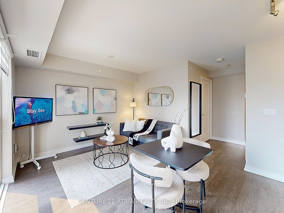 **Offers anytime! No games!** Indulge in luxury at the prestigious Avani Condos built by TRIDEL + 5years new! + Stunning 1 bedroom suite + 1 washroom + 1 parking + 1 locker + Spectacular views of the courtyard and parkette + 469 sq ft of functional space + **HIGH SPEED INTERNET INCLUDED in the monthly maintenance fees** + Newly painted walls + Immaculate condition + Laminate flooring throughout + Chic open concept kitchen featuring stainless steel appliances + Spacious bedroom with stunning views + State of the art amenities including: 24 hr concierge/security, outdoor terrace with BBQ and lounge area, gym, yoga studio, guest suites, visitor parking, pet spa and party/meeting room (amenities are located on the 3rd floor) + Excellent location! Minutes to Highway 401, shopping malls (Scarborough Town Centre), Kennedy Commons plaza, restaurants, Centennial College, Walmart, grocery stores, public transit, parks, and so much more! Perfect for first-time home buyers and investors! Extras: Existing stainless steel fridge, cooktop, oven, range hood, washer/dryer, existing electronic light fixtures, window coverings.