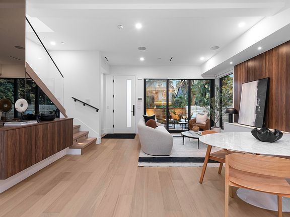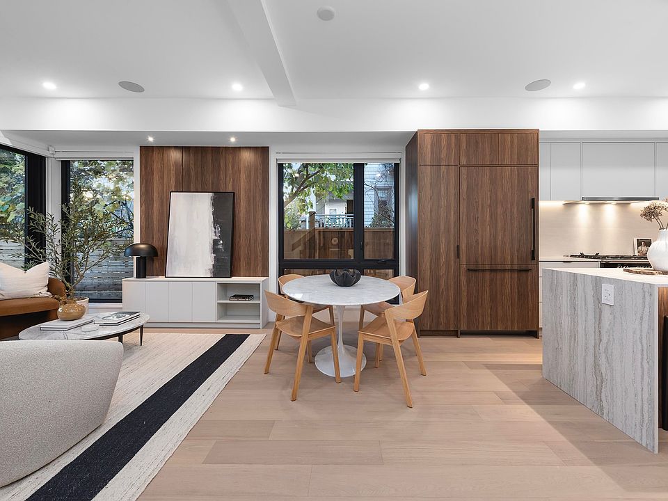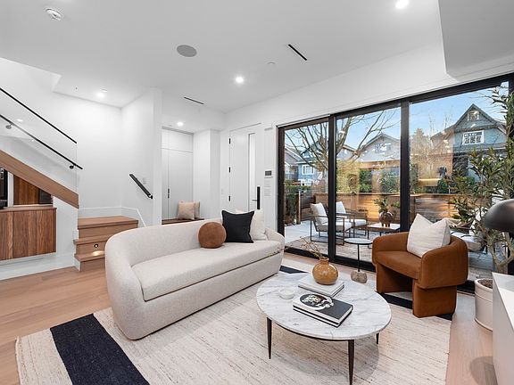 Crafted by Vandwell Developments, this brand-new 4 bed, 4.5 bath 1,969sqft side-by-side half duplex in coveted Cambie Village pairs refined design with effortless indoor–outdoor living. A panoramic private rooftop deck captures sweeping mountain, skyline views and sunsets. Floor-to-ceiling windows flood the main level with light and open to 2 secured patios, perfect for entertaining. Inside, seamless glass railings, built-in sound and a sleek chef’s kitchen create a calm modern backdrop. Upper bdrms enjoy treed and city outlooks, while a heated crawl space offers exceptional storage. All on a quiet, tree-lined street steps to shops, parks, restaurants, Canada Line, plus top public and private schools.