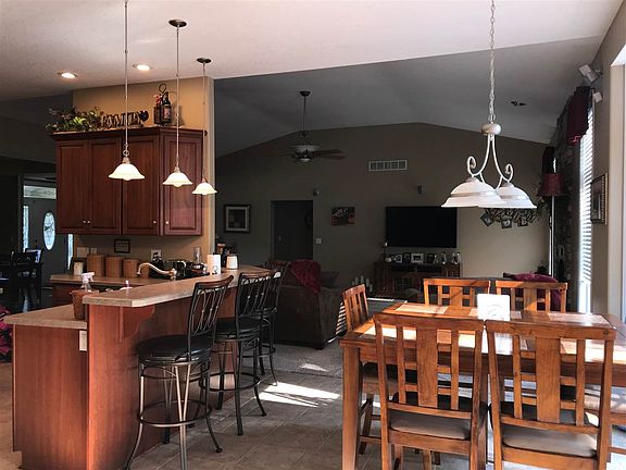 Pride of ownership shows throughout this tastefully decorated and well maintained 3 bedroom, 3 1/2 bath ranch with desirable open floor plan. Cherry cabinets abound in the kitchen, office, and bathrooms. Great room with vaulted ceiling and stone fireplace is ideal for relaxing, as is the spacious 1st floor Master Suite with vaulted ceiling and quaint fireplace. The dining room and foyer feature tray ceilings and hardwood floors. Functional first floor laundry has sorting drawers. Perfect for entertaining or family time, the finished basement features a family room with fireplace, projection screen tv, rec area, and kitchenette with cherry cabinets and large island. There is plenty of storage and potential for more bedrooms in lower level. Additional features include: whole-house stereo system, ADT security, 2 furnaces, 2 c/a units, and 2 water heaters. Outside the home: 33' above ground pool w/heater, hot tub, deck & add'l 20x24 garage. Beautiful yard & landscaping. Agent owned