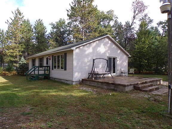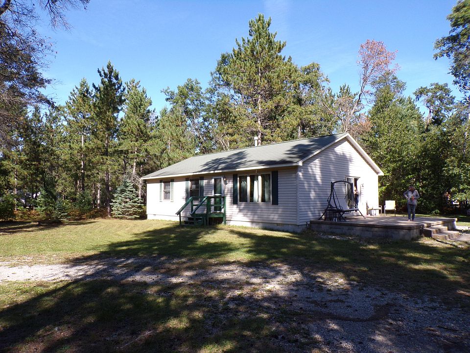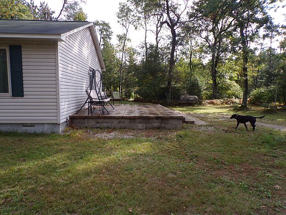 Three bedroom two bath ranch with large stamped concrete patio. Oak cabinets. Newer flooring in kitchen and baths. Home sits at the back of a deep lot with mature Oaks, Red and White Pines. Close to the AuSable River and many acres of Federal Land.