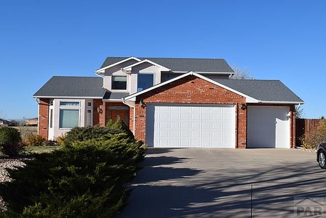 A beautiful home, great neighborhood and amazing vews! This 5 bedroom home is ready for you! Main level Master Bedroom with Steam Shower, Jet tub, 2 Vanity sinks, Water closet and Linen closet. 3 bedrooms upstairs and one on lower level, lots of closets. Lower level provides huge family room. 3 gas log fireplaces; Main level hardwood floors. Living room (with architectural niche above), Family Rm and Master Bdrm. BRAND NEW roof as of 11/28/16. Kitchen with cook island and built-in oven and microwave just installed last summer plus Breakfast Bar and Pantry. Front of home provides views over Lake Pueblo of the Spanish Peaks and rear view is of Pikes Peak. Rear deck off of Dining Room leading to lower paver patio for your BBQ area. Yard is nicely landscaped. Vaulted Ceilings and Ceiling Fans. 3 car attached garage. Special Financing Incentives available on this property from SIRVA Mortgage."