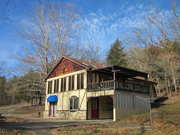 REDUCED BELOW APPRAISAL,12.5 acres. Charming Chalet Styling, finely crafted with custom woodwork throughout. Great Room features a wall of windows that overlook the yard and footbridge crossing private creek to garden/workshop area. Furnace/HVAC new in 2007. Several storage buildings including older home considered of little value with no disclosures. Located on county-maintained road, with Hwy 160 Frontage and adjoins Corps of Engineer Lands. Beaver Creek & Slough Hollow, both popular fishing areas, are just around the corner. Nearby Bull Shoals Lake & Lake Taneycomo afford some of the country's best fishing opportunities.
