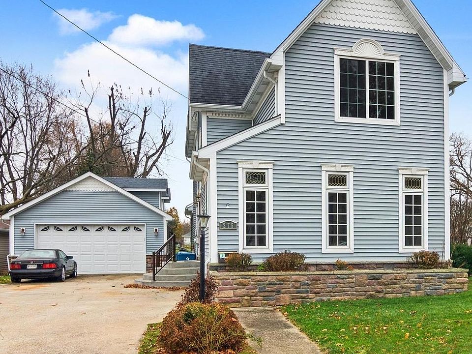 This 19th Century charmer, has been completely updated to the 21st Century This beautiful home had a complete exterior/interior remodel in 2012/2013 - featuring 3 spacious bedrooms - all with vaulted ceilings and 3 baths over 2000 finished sq. feet of living space Upon entry, you will be greeted by vaulted ceilings in the spacious living room. The main floor is complete with a HUGE kitchen, that you will not want to miss, spacious dining area, great room with vaulted ceiling walkout to large deck, pool and fenced yard, and a finished laundry room. The master bedroom is tucked away upstairs with its own bathroom, along with 2 additional spacious bedrooms and full bath. Oversized 2.5 garage features a loft area and huge storage area, too You won't want to miss this great home All appliances included, whole house generator and so much more