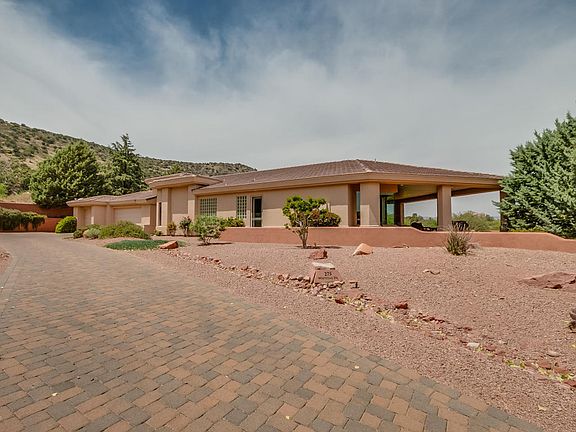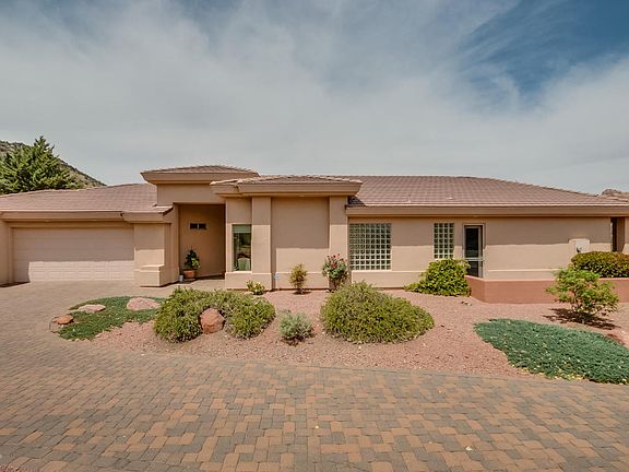 Custom Built in Sedona Golf Resort offering PANORAMIC RED ROCK VIEWS on one level featuring 2907 sq ft, 4 bdrm, 3 bth SPLIT Floorplan and 3 car garage. Great room w/ fireplace, kitchen & dining room boast picture windows to breathe in red rock views. Separated family room for media or reading. Gourmet Kitchen highlights corian counters, double ovens, gas cooktop, built in buffet, island, built in desk. SPACIOUS master retreat delights w/ views, enclosed camode, separate vanities, separate soaking tub and shower & walk in closet. Escape outside to the covered OUTDOOR LIVING ROOM for outdoor entertaining to marvel at the views or for star gazing. The pond brings solace after long excursions on the hiking trails & rounds of golf.This home is at the end of a beautiful paver drive.A MUST SEE!