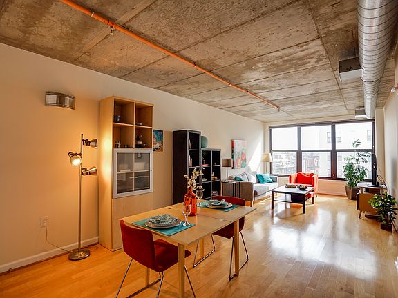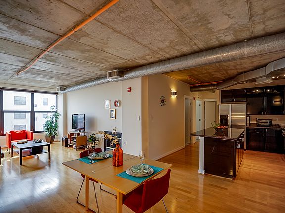 This TRUE 2 bedroom condo has a great loft-like feel with exposed ductwork, shining hardwood floors, large kitchen with island/breakfast bar. Plus bright eastern exposure, two walk-in closets, gas fireplace & washer/dryer. This pet-friendly building has an amazing roof deck. Metro, restaurants, bars - all a short walk from your front door. Walk Score 91.