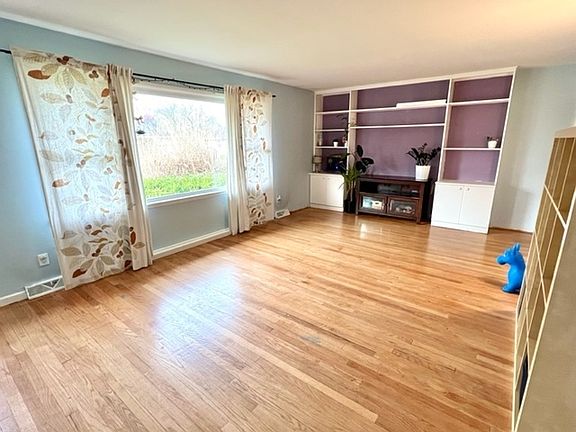 All-brick ranch in a quiet neighborhood near the hospital. 2724 sq .ft. total with 3 bedrooms + a bonus room in the full basement, 2 full bathrooms, and a large eat-in kitchen with tile backsplash and newer gas range. The big backyard is private and includes a covered patio and firepit. Refinished hardwood floors + many updates including a 200-amp breaker panel, new can lights, new central air and water heater in 2019, roof 2013, new plumbing in most of the house, replacement vinyl windows. Kitchen + laundry appliances remain with the home along with the storage barn and playset. This home is not in a floodplain and does not require flood insurance.