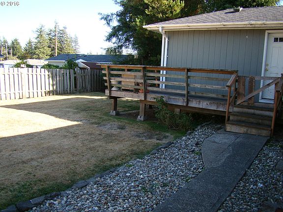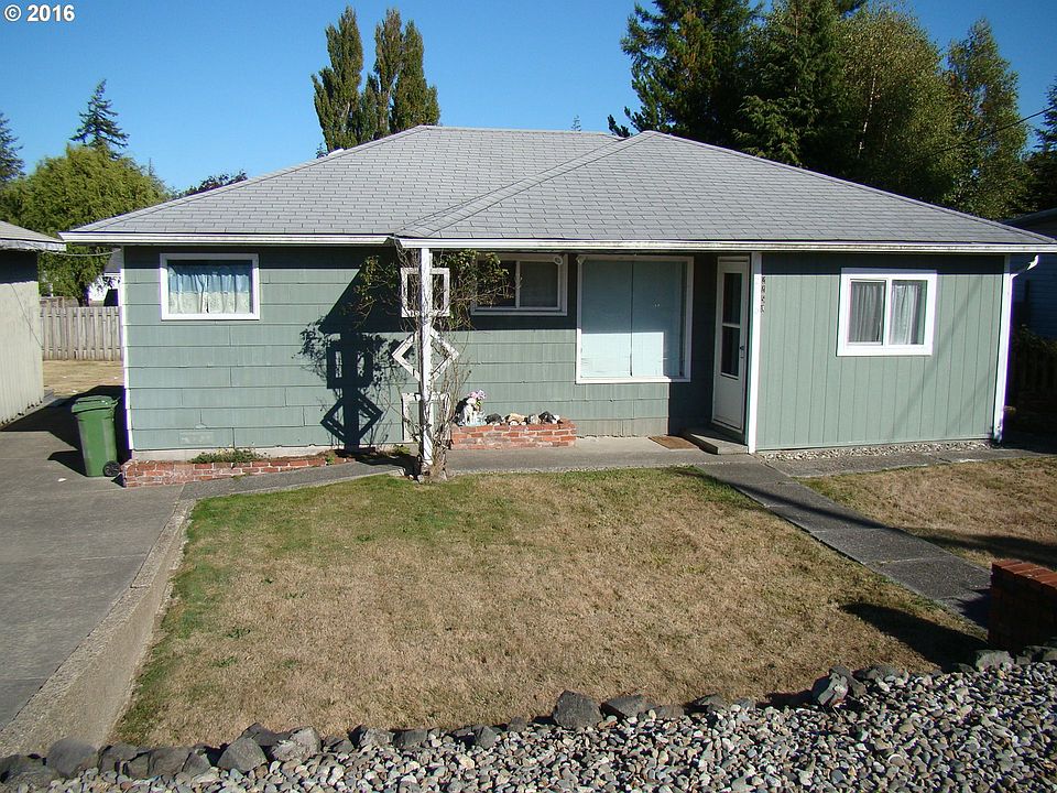 Sweet and simple single level home in Coos Bay! Two bedrooms and 2 full bathrooms, open kitchen to dining room, large laundry room with walk in shower, and family room with slider to back deck. Back yard is flat and fenced. All appliances included. Detached garage has a carpeted finished room (240 sq ft.) as well. Addition was built in 2014 adding family room and full bathroom. Cute, clean and ready for new owners!