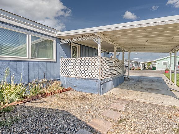 55+ community on the RIVER! This beautifully updated home, with quartz countertops, features a split bedroom floor plan, 3 bedrooms, 2 baths, plus office/den. You will love the open concept floor plan, updated LVP flooring throughout, updated HVAC and water heater, metal roof, vaulted ceilings and large roomy bedrooms. Fully updated kitchen includes newer appliances, cabinets, quartz countertops with tile backsplash. Large master bedroom with a big walk-in double closet. Enjoy the front deck with easy ramp access, covered concrete parking, large storage shed and low maintenance landscape. This lovely home is move-in ready and is located in a wonderful 55+ community on a quiet cul-de-sac street. Lot rent per month is $745 includes water, sewer, garbage.
