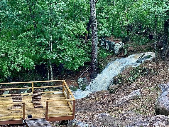 Lookout Mtn Private 61 acre Retreat on Johnnies Creek. Escape to the woods & experience the wonder of the great outdoors including swimming/fishing holes, waterfront trails & well laid green fields for wildlife. Enjoy your stay in the two beautifully updated cottages next to the seasonal waterfall . If you are looking for a family compound, investment rental, or just a great getaway this is it! The Cottages were completely updated & are sold furnished. The larger 3BR/2B home is only used by the Owners & features a real fireplace, wonderful wood floors, soaking tub & shower, vaulted living area, new kitchen, screened porch & waterfall deck. The smaller 1BR/1B unique-boho peacefully pink cottage known as , the Waterfall Cottage & is used as a short term rental .