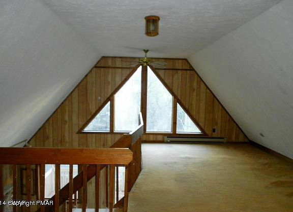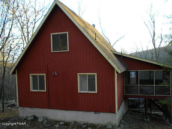 This Chalet nestled into the hillside with Cathedral ceilings Lots of windows make this home bright & airy also has large loft with 1/2 bath in loft area.1st floor is open floor plan with fire place and sliding glass doors the lead onto large Deck.full bath 2 bedrooms,Large Sun room.Community offer skiing,indoor outdoor pool,restaurant,club house.HUD Owned home is SOLD AS IS
