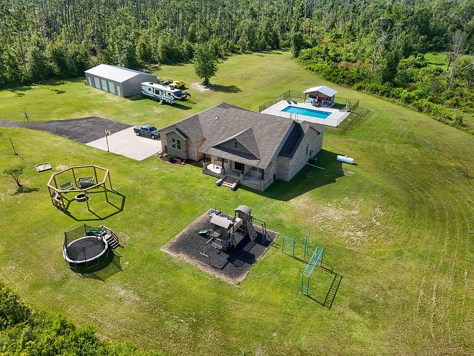 Welcome to this beautiful custom craftsman style home built in 2018 sitting on 7 1/2 acres which offers approximately 3042 square feet of living space. This property sits about 200-300 ft off the main road for all the privacy you would want. This beautiful property features 4 bedrooms with a 5th bedroom converted into an office, 3 1/2 bathrooms and an inviting 18x36ft saltwater swimming pool with an enclosed chain link fence. Outside, a 16x20ft covered pavilion with outdoor kitchen access. Private outside shower with hot and cold water. A 36x60ft enclosed pole barn comes with 3 10x10ft roll up doors, 2 8ft doors, underground power, 50 amp RV hookup, 220 amp outlets located inside of shop and 400 amp service on exterior of the main house. Two car garage with a 40x40ft concrete pad and an asphalt driveway.