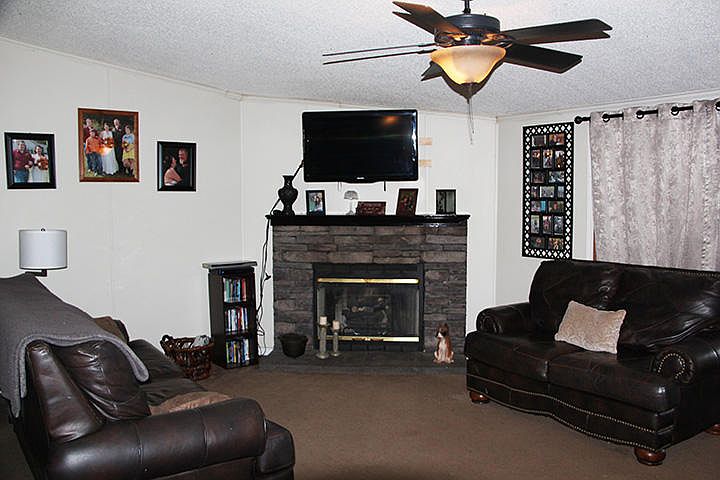 Meticulously maintained 4 bedroom, 2.5 bath mobile home located on a gorgeous 1.01 acre parcel and has gorgeous ridge line views. As you enter this home from the front porch you enter into a large open den and dining combo. The large adjacent kitchen is fully equipped with all appliances, dark wood cabinets, and large center island breakfast bar. The kitchen is open to the living room that has a gorgeous corner stack stone gas log fireplace. The entire area is open and gives this gorgeous home an open airy feeling that just invites relaxation. This floor plan offers a split bedroom design with the master suite adjacent to the kitchen. The large master suite has an additional room that can be used as a large closet or a small office. There's an additional closet so you can have his and her closets if you desire. The master suite bathroom offers a double vanity, stand up shower, and large garden tub. Across the home you will find 3 additional bedroom and another full bath and half bath. At the rear of the home you will appreciate the large laundry room that has it's own entrance. Relax outside on the large covered deck or enjoy the sunshine on the newly installed patio. The air conditioner has recently been rebuilt on this exceptional property as well. There is also a large 12X10 outbuilding for additional storage. (There is only a 3 bedroom septic permit on file but the home is a 4 bedroom).