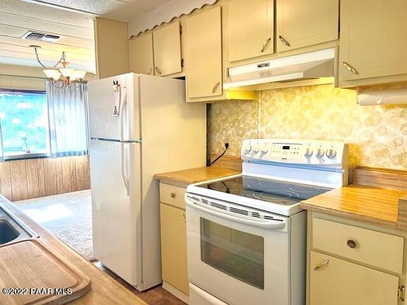 Vacant well cared for double wide w/mature trees, 2 bed, 1.75 Bath w/252 Sqft addition includes a spacious living room & wood burning fireplace, built in curio in dining area, room A/C in bedrooms, Vinal siding, Heavy gauged window insulation to living room windows, huge laundry/storage room, workshop, fenced in back yard with clothes line, NO HOA centrally located near shopping, hospital, movie theater, parks, hiking trails & the heart of Prescott Valley.