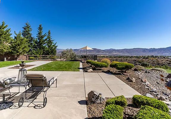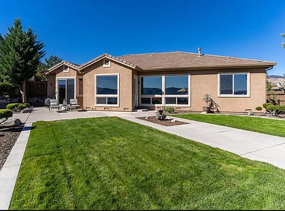 3 Bedrooms + FORMAL OFFICE. 2 Bathrooms. 2 Car Garage. Rent $4,800. Deposit $4,790. 2,358 sq. ft. Includes fridge, D/W, gas stove, microwave, W/D, A/C, fireplace and double pane windows. Two small pets of 40 lbs. or under, upon approval, with an additional security deposit of $500 per pet. VIEWS, VIEWS AND MORE VIEWS!! Don't miss this ELEGANT SINGLE-STORY HOME with 3 bedrooms plus a formal office ON A PREMIUM VIEW LOT located in the PRIVATE GATED COMMUNITY OF ARROWCREEK IN SOUTHWEST SUBURBAN RENO. Upon entering the home, you are greeted by a wall of picture windows in the living room/breakfast nook that overlooks the 14th hole of the legends golf course with Thomas Creek running along the far side of the fairway. The home itself is immaculate and beautifully appointed with numerous upgrades. The gourmet kitchen features a double oven, microwave, 5- burner gas cooktop, side-by-side refrigerator/freezer, tile flooring, large breakfast bar, breakfast nook and walk-in pantry that opens directly into the family room, in this very open floor plan, that has a tile-accented gas log fireplace and lots of those fabulous view. The large master bedroom has a bay window that looks out over the views; a large master bathroom with a garden tub and a tiled walk-in shower with a seating bench plus 2 closets (one a walk-in) with California Closet designs. There are custom window treatments throughout and surround sound speakers in the master bedroom, master bathroom, dining room, office, and outdoors on the back patio. Other features include a Cul-De-Sac location, high ceilings, a humidifier system, an electrostatic air filter and a satellite dish and a garage that will accommodate 2 vehicles as well as a golf cart. In addition, the home faces west providing you with shade from the afternoon/evening sun when you are out back. There is a viewing deck at the back of the lot with built-in seating benches from where you can enjoy the panoramic, never to be obstructed views of the golf course, the valley, the Virginia Range of mountains and downtown Reno/Sparks. Association amenities include the use of the resident's center with its 3 swimming pools, 4 tennis courts, an exercise room, meeting room and playground. Arrowcreek is also home to 2 championship-level golf courses. The owner provides for all landscape care. Tenant pays G, E, W, T & S. 1-year lease. Contact us to schedule a showing.