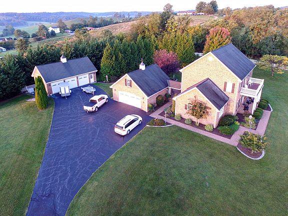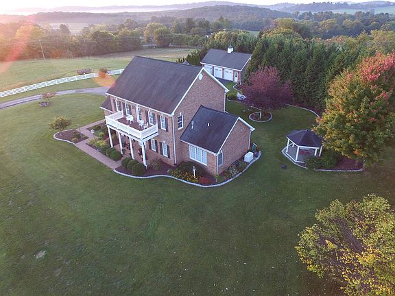 Paradise awaits! First time offering of this beauty! Nestled high on the hill with gorgeous panoramic mountain views. Meticulously landscaped with flower gardens, sidewalks and patios, Relax on the side patio and enjoy the soothing sounds of the water fountain and cool breezes. No stone left unturned, this home boast Pride of Ownership throughout. Beautiful hardwood floors, and trim. Master bedroom suite, Office, large kitchen, Living and Dining all on the main level. Two additional bedrooms with semi private baths and great room for additional entertaining space all located on the upper level. If that's not enough, expand into the unfinished basement! GENTLEMEN and Ladies you will love the detached 6 car two story garage with the upper level with heat & AC perfect for the car enthusiast, artist, crafters etc... The two car attached garage has a walk up to the attic for storage. Nice property for horses or acreage may be conducive to a division for second home or family member exemption.