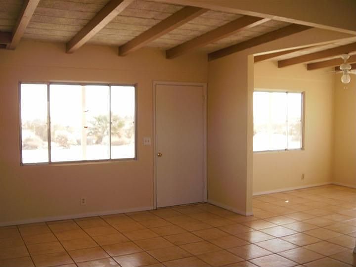 Quick commute to 29 Palms base. Extra Storage Room. Brand New cabinets and countertops in kitchen. Newer Tilethroughoutthe entire house, New Swamp Cooler. All Electric. This home is away from the city. A great place to look at the stars! Pets ok upon approval and additional Pet Deposit. Security Deposit $695. Please drive by before scheduling a viewing Home is ready to move in to Please contact Taylor to see the property and with any questions at 760-780-7658. Directions: Take LearAve. Northoff of Hwy 62, turn Righton Indian Trail. North on Desert Heights Drive,Go all the way to the end where the road sweeps to the right. Keep following it. Turn Left on Sunrise and it is the yellow house on the left. Inspire Property Management Broker # 01702999
