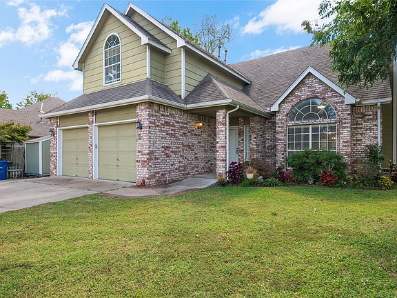 Inviting traditional home in Jenks Public School District & NW Elem w/mature trees & fenced yard. Vaulted ceilings, laminate wood floors & an electric roll in elevator make this property stand out. Spacious master suite, office & game room! Ideally located near Tulsa Hills Dining/Shopping, The Oaks Country Club, & Riverside Jogging/Biking trails.