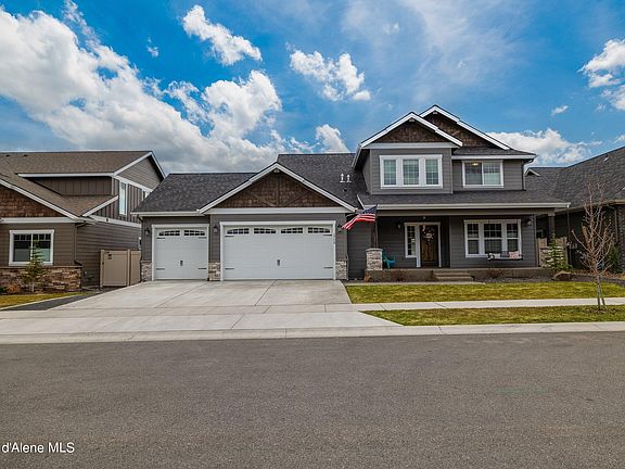 Experience the best CDA Place has to offer from this nearly new home with luxury builder upgrades. This open floor plan features 4 bedrooms (2 being primary suites), 3 1/2 bathrooms, downstairs office plus a large bonus room that could be used as a 5th bedroom. Upgrades throughout include extended dining area, luxury laundry room, extended depth 3 car garage, LVP wood floors, tankless water heater, granite countertops, stainless steel Bosch appliances, brick fireplace and gourmet kitchen. Enjoy all that Coeur d'Alene Place has to offer with multiple parks, close distance to schools and dining and miles of trails within the neighborhood.