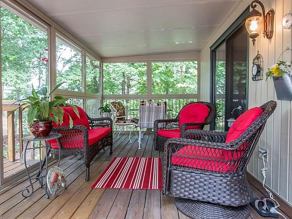 NEW PRICE! Updated home and fantastic convenient location! Home is nestled on a quiet cul de sac lot and has a large deck and two screened porches to enjoy the natural scenery! Kitchen updated with corian counters, tile back splash, stainless appliances and hardwood floor. Nice open floor plan with cathedral ceilings, living room with masonry fireplace and gas logs. Two ML bedrooms with updated baths. Spacious lower level den is great for an office. Refrigerator, washer/dryer remain, 2 car garage.
