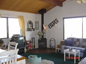 This secluded Bear Valley split wing home offers 4 bedrooms, 2 full bathrooms and amazing views of the valley! If you need garage space, there is a 2 car garage that includes a large area for a workshop, a single car garage, an RV garage and even a carport area. If that isn't enough, the almost 17 acre lot has a lower level area that can be used for horse facilities, more garages, a huge workshop or even a guest quarters (check BVSA.org for HOA rules and regulations). The kitchen opens up to the large family room with a wood burning stove and views of the valley and surrounding mountains. The fenced back yard offers an area for gardening or a dog run and the home has central heat and AC. Other amenities include Race Fiber Optic Internet, 220V in the laundry room and garage, Tuff Shed, Oak/Pine trees, large rock croppings and the electrical panel is generator ready.