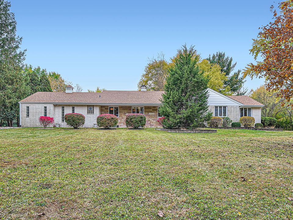 Nestled on nearly 5 acres, this all-brick ranch offers a serene retreat surrounded by mature trees and situated across from a nature preserve. The home features beautiful hardwood floors throughout, creating a warm and inviting atmosphere. The kitchen is equipped with granite countertops and includes all appliances, complemented by a cozy eating area. The charming family room boasts a fireplace and scenic views of the backyard, with direct access to the sunroom that leads out to a lovely paver patio-perfect for outdoor gatherings. This home includes three bedrooms, with the master suite featuring a fully updated bathroom. The spacious unfinished basement offers endless possibilities for customization. Additionally, a detached structure provides options for an extra garage or barn. Recent updates include new roof (2021), Furnace & A/C (2022). The property is being sold as-is.