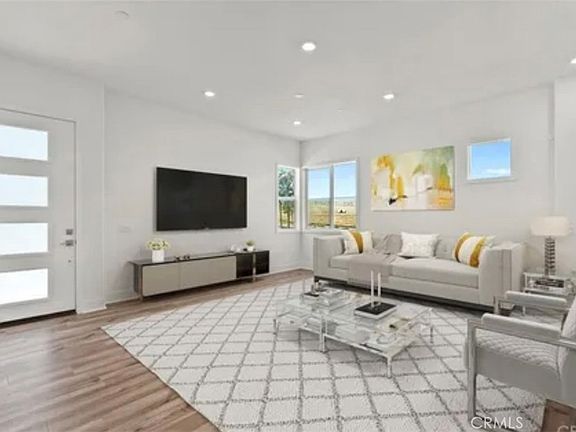 Welcome to modern luxury in the heart of Five Point Valencia. This stunning Lennar Rosemist Plan 4, the largest and most desirable model in the community, was completed a couple years ago and offers the perfect blend of sophistication, comfort, and style. With five bedrooms, four and a half bathrooms, and three spacious levels, this home showcases impeccable design and attention to detail. The main floor features an open-concept, dining area, and chef’s kitchen with a large quartz-topped island, professional-grade stainless steel appliances, and a six-burner cooktop with designer hood. Ten-foot ceilings and wood-like LVP flooring create a sense of warmth and grandeur throughout. A guest bedroom with a full bath on the first floor provides flexibility for visitors, extended family, or a home office. Upstairs, the luxurious primary suite offers a peaceful retreat with a spacious walk-in closet, dual vanities, soaking tub, and separate shower, while three additional bedrooms, two more baths, and a laundry room complete the second floor. The top level is a versatile bonus/loft area featuring its own bathroom, wine fridge, counter space, and a covered terrace with panoramic views of the Santa Clarita Valley—perfect for a game room, gym, or lounge. Extra storage in the 2 car garage with EV charging station. Enjoy year-round outdoor living with a gated backyard and covered patio ideal for dining or relaxing. Located within the vibrant Five Point community, residents have access to world-class amenities including three pools, a spa, BBQ areas, playgrounds, scenic greenbelts, and a resort-style clubhouse. Conveniently close to shopping, restaurants, top-rated schools, Magic Mountain, and freeway access, this like-new home offers the best of modern design and community living in one of Valencia’s most desirable neighborhoods.