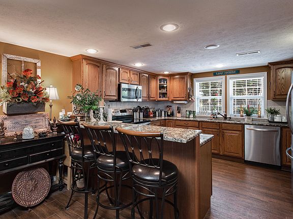 AWESOME LAKE FRONT VIEWS from this unique 2 acre home that contains something for nearly everyone. Location, Location, play area for the kids, gardens & flowers, 1 Bedroom Guest House, 3 car detached garage w/unfinished upper level. Home boasts 4 lakeside decks, and one has a veranda w/plenty of entertainment area & another w/huge BBQ area w/multi grills & connects to a custom rustic ''WOW'' bar/game room. 3 Bed/4 Baths, lge kitchen w/ S/S & granite, Open floor plan, FP, new ceramic plank floors, new Mstr. Bath & Closet. Nearly everything in home has been updated or replaced from septic system to roof in 2017. Gated concrete driveway and 10'x24 slip w/lift avail for $42,000. extra $$$ Many rental opportunities available with this amazing property.