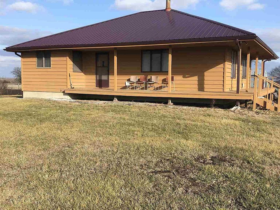 Beautiful country home with 2 bedrooms, 2 baths and a wrap around covered porch on 10 acres. Also 2 nonconforming bedrooms in basement. Well maintained home with new furnace, heat pump, AC, 50 gal HW heater, roof and gutters. 3 out buildings, 60x60, 24x24 and 24x24. !0 acres completely web fenced. Lots of pens for cattle, goats, etc. Can be either Lyndon or Marias des Cygnes school district. You'll love the wood stove in living room for extra ambience. Large yard with huge mature trees. Won't last long!