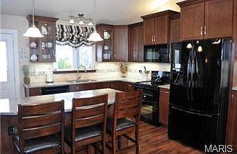 AMAZING KITCHEN! THAT'S NOT ALL!! This 1600+ sq ft open floor plan has 3 Bdrms on the main flr;Mstr Bdrm Suite w/Full Bath w/sep tub & shower.Gorgeous flooring in Kit & lg Dining Rm area.Kitchen has been totally gutted w/NEW EVERYTHING including granite countertops,tumbled marble backsplash,new 42 inch cabs,over & under cabinet lighting,center island, planning desk,glass front panel,pendulum lighting over & electric on island,b-in micro,dw & elec stove.Mn floor Fam Room w/bay window.Main flr laundry w/storage cabs & ceramic tile flooring currently being used as mudroom (laundry hook-ups also in LL util rm).LL is finished w/WONDERFUL use of space - Fam/Rec Rom has b-in shelving/bookcases & berber carpet.Poss Bdrm PLUS a Full updtd Bath w/white ceramic & pedestal sink.Workout rm could be used as 5th Bdrm.Water heater 2 yrs new,water filtration system,new sump pump,approx 14x30 patio w/retractable patio cover.All this AND Seller offering a 1yr HSA home protection plan!