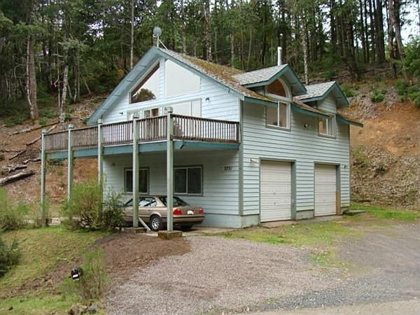 Beautiful private end of the road location, consisting of 3 parcels totaling approximately 1.25 acres with a home built over a 2 car garage. This home has soaring ceilings and dormers and an open floor plan opening to a spacious deck. The home has a new roof. Great opportunity!