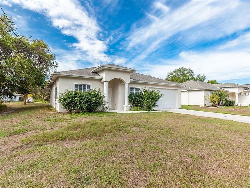 Spacious three bedroom two bath on large lot. This popular floor plan has separate living and dining rooms in addition to a great room off an open kitchen. Large master bedroom has private access to porch, his and hers walk-in closets. Master bath has dual sinks, a garden bath and separate shower. Screened in porch overlooks large lot. Floor plan with front living area could be a home office, den or bonus room. Large interior laundry. Freshly painted in neutral colors this is truly a move in opportunity in a great area of North Port with a country feel but close to shopping, restaurants and activities.