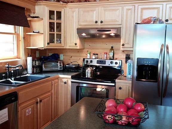 YOU WILL LOVE THIS HOME! This charming 2 bedroom, 2 bath property in Cedar Falls will make you feel right at home. The living area is open and bright with lots of windows to enhance the mountain views, and features a towering cathedral ceiling, 35 foot custom, stone fireplace and gleaming millwork. The kitchen offers lots of cabinet space, appliances, island bar, and small pantry. The master suite is situated on this main level with a HUGE master bath that has been upgraded to include tile flooring, jack-n-jill vanities, whirlpool tub, linen closet and washer/dryer closet. Downstairs there is plenty of space for everyone to hang out and have fun, or relax in the private guest suite. From this bottom level you can walk out to the ground level patio where there is additional storage. The property consists of 0.61 acres with plenty of parking, 2 separate storage rooms, wrap around decking, and mountain views. "Cedar Falls" subdivision amenities include a seasonal outdoor pool, picnic area, playground, pond, and lovely landscaping. Like we said, you will love this home! Please see Disclaimers in Addendum.