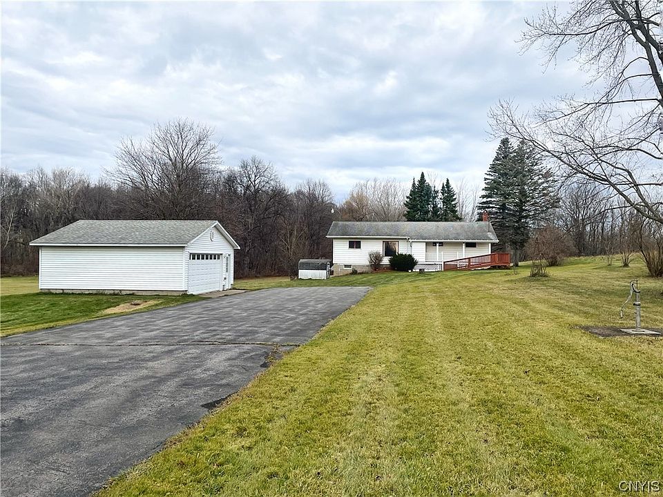 Welcome to this Inviting 3 bedroom, 1 bath home perfectly situated on a quiet rural road just minutes from Cato, Port Byron, and Weedsport. This property is surrounded by farm land and includes 2.5 acres of serene natural beauty with plenty of room for outdoor activities, hobbies, entertaining, and simply enjoying the fresh air. The newer built 2 car detached garage comes with remote openers and ample space for storage. The homes exterior is handicap accessible with a built in ramp. Inside you’ll find first floor living with a full bath and laundry combo, open concept dining/kitchen and living room, as well as an added family room and covered back porch. The full basement offers a large storage area with potential for added living space, a work shop with outdoor access, as well as an area you can drive in and park lawn equipment. The possibilities are endless with this home, don’t miss the chance to come see it and make it your own.
