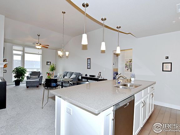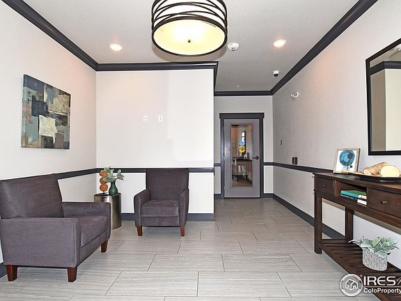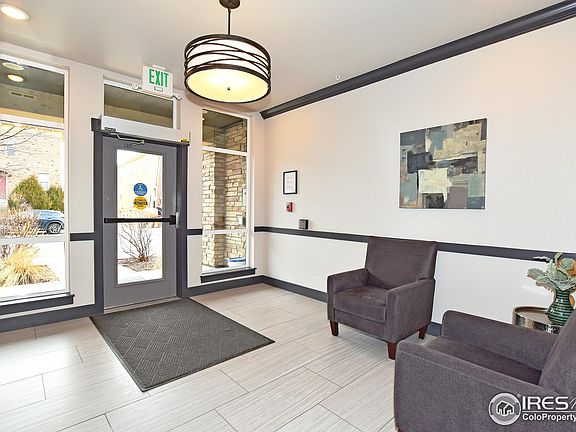 You'll never want to leave your balcony in this top-floor condo with great mountain views situated in prime midtown Fort Collins, just in time for upcoming summer sunsets! The oversized Princeton floor plan offered only on 3rd floor units, has 12ft ceilings and generous oversized bedrooms. The upscale condo is in impeccable condition! The 2bd/2ba split bedroom plan provides plenty of space for comfort and convenience. The open floor plan, high ceilings, and large windows fill the condo with natural light, creating a bright and inviting space. There is ample kitchen space with a large center island featuring quartz counters, S/S appliances and additional roll out shelving. The great room features a cozy gas fireplace with large windows and mountain views and is the perfect spot to unwind. Step out onto the private balcony from the great room and enjoy the front range views. This floorplan also offers a generous sized laundry/mudroom equipped with a tankless hot water heater. The primary suite has cove 12ft ceilings, loads of natural light. Ensuite bathroom has comfort height toilet and grab bars if needed. This building is equipped with an elevator for easy access and for those not wanting any stairs! This is a secure key coded building, to give added safety assurance. There is also an upgraded oversized attached one car garage (#10) providing plenty of parking and extra depth for additional storage. Ample additional parking is available directly behind the condo. A community dog park allows your pets to play and meet new friends in this welcoming community. Located in desirable Rigden Farm neighborhood in central Fort Collins. Walking distance to excellent dining, shopping, biking trails and recreational experiences. These 3rd floor units don't come along often especially with NO metro tax and low HOA dues, tons of amenities!