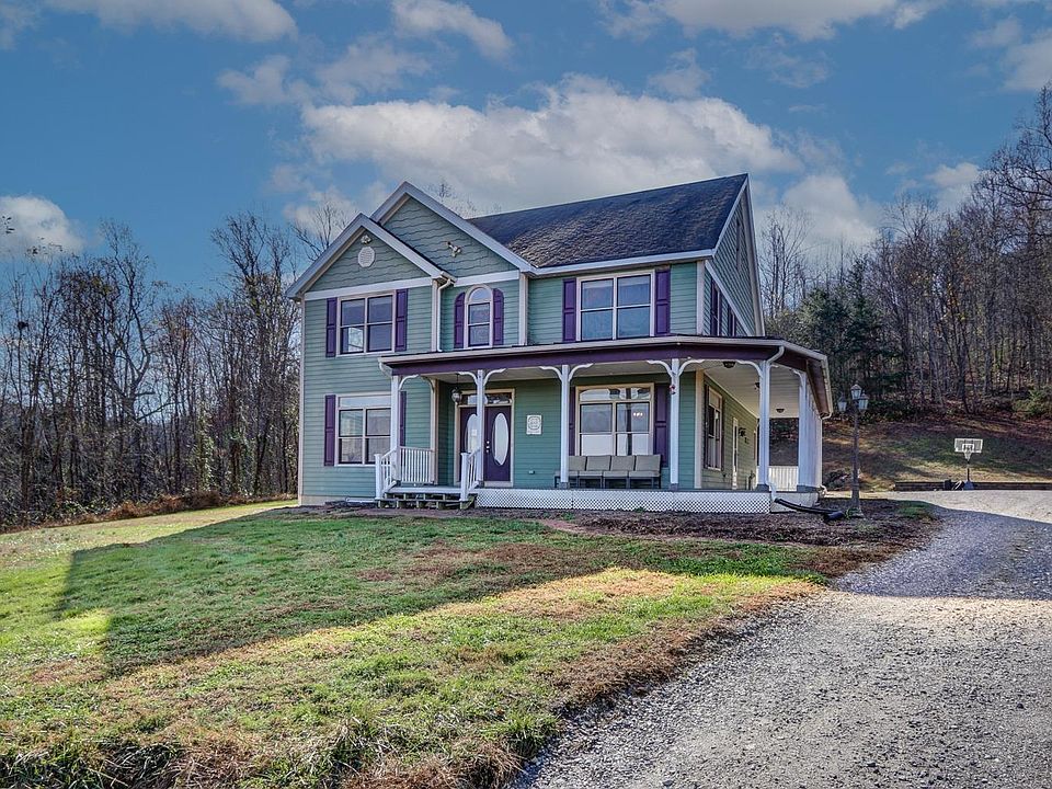 Come see this beautiful, spacious home with breathtaking mountain views! It boasts 4 bedrooms, 5 bathrooms, and sits on 22 acres! Enjoy the picturesque scenery and watch the sunrise from your wrap around porch. This peaceful setting is less than 10 minutes to restaurants, a grocery store, and the heart of Amherst. It offers a one stall horse barn with electric fencing, space to ride, and 2 paddocks. Plenty of space for a garden, fire pit, and entertaining! Inside, you'll find plenty of natural lighting, beautiful hardwoods, and a large open living area on the first floor. The second floor has 3 bedrooms and 3 full bathrooms. The primary bedroom has a vaulted ceiling, and the adjoining bathroom has a stand alone tub, walk in shower, and 2 vanities. The basement offers a 4th bedroom, full bathroom, and living area, and room for growth or storage. This home has a whole house generator, central vac system, storage shed, and basement workshop. All appliances convey.