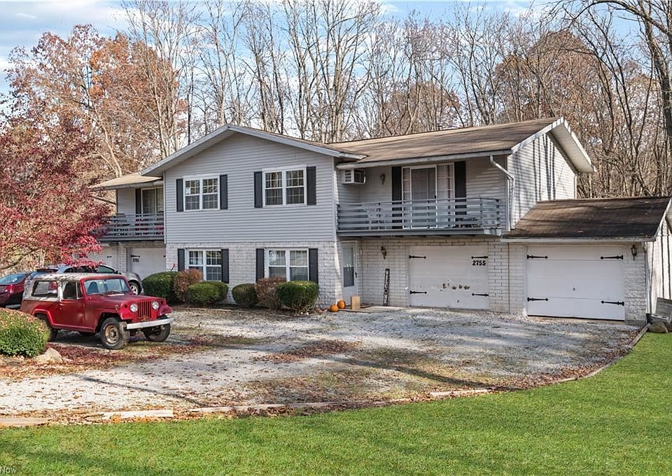Great opportunity in Green Local Schools. Twinplex with two car garage on each side. Each unit is two bedrooms and 1.5 bath fully applianced. Wooded lot with two large decks off the back. Left side has Garage door openers and central air. Right side has window unit air. Water Softner on Right side supplies both units. Unoccupied side new carpet and kitchen flooring, vanity, and paint in 2020.