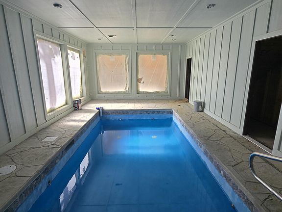 Private indoor poolTranquil wooded settingPrivate bathNatural lightFive spacious bedroomsCustom wood accentsGranite counters