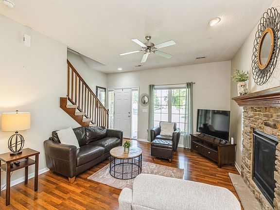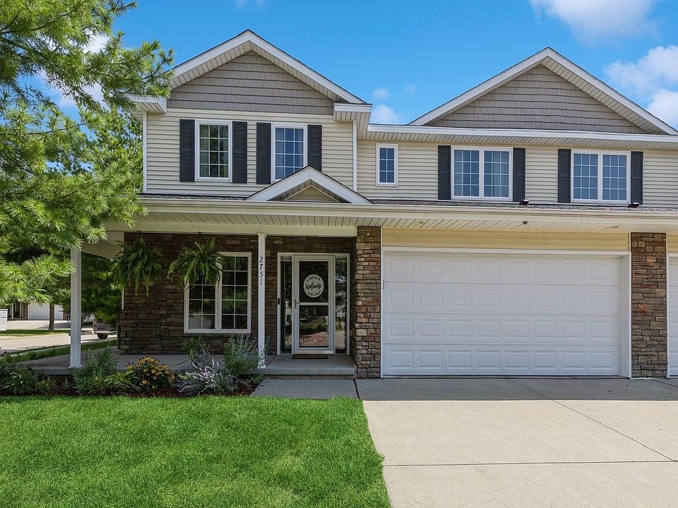 This end unit townhome has been lovingly cared for and maintained by its original owner. The wraparound porch with patio provide space for plants and seating while mature trees and perennials provide shade and privacy. Main floor living room is spacious with a gas fireplace to cozy up to when weather permits. Granite countertops and stainless appliances top off a beautiful kitchen, a half bath and laundry finish up the main floor . Upstairs you'll find two primary suites, each with walk-in closets and attached bathrooms. Also found upstairs is a loft space, perfect for an office or extra living space. All appliances and window covering included. New furnace in 2024. Don't miss out! This home is even better than the pictures portray.